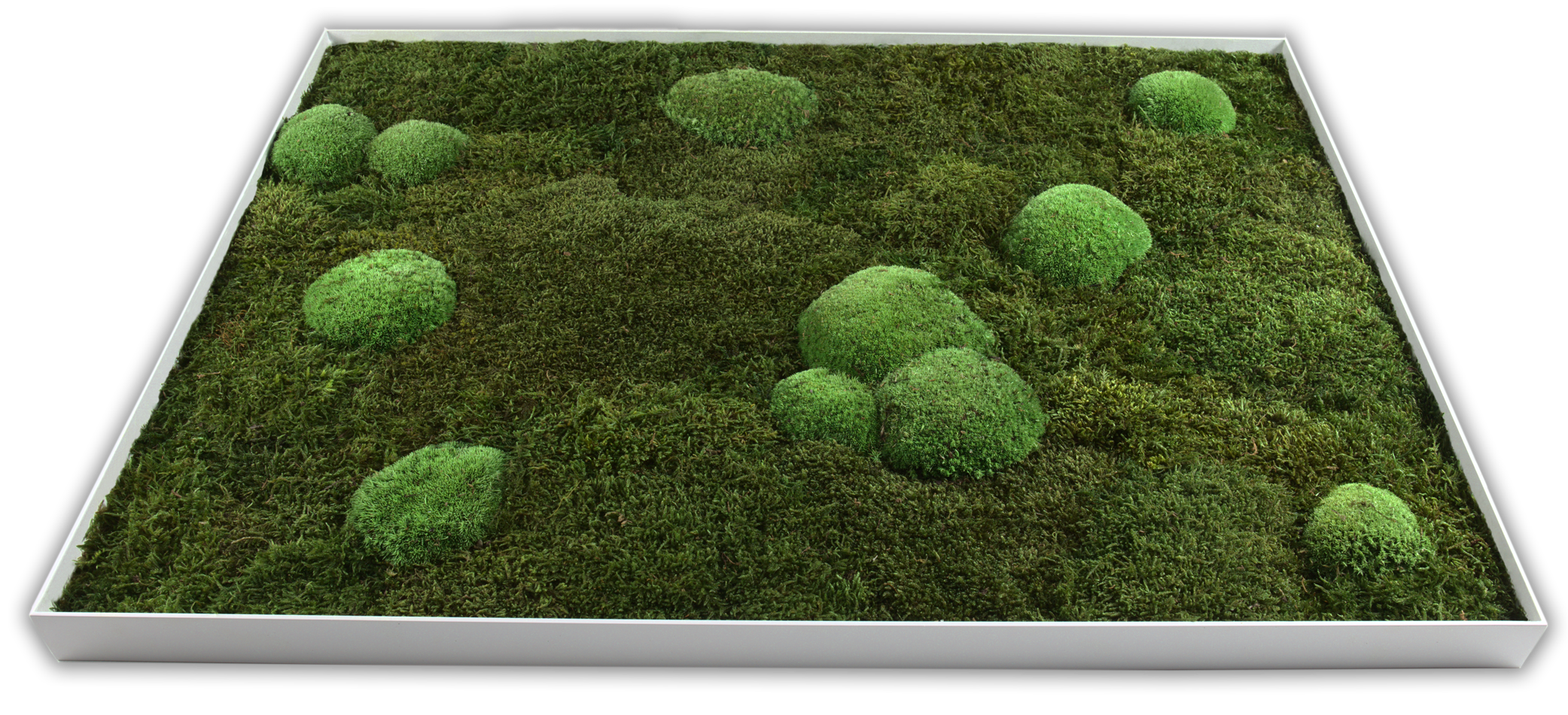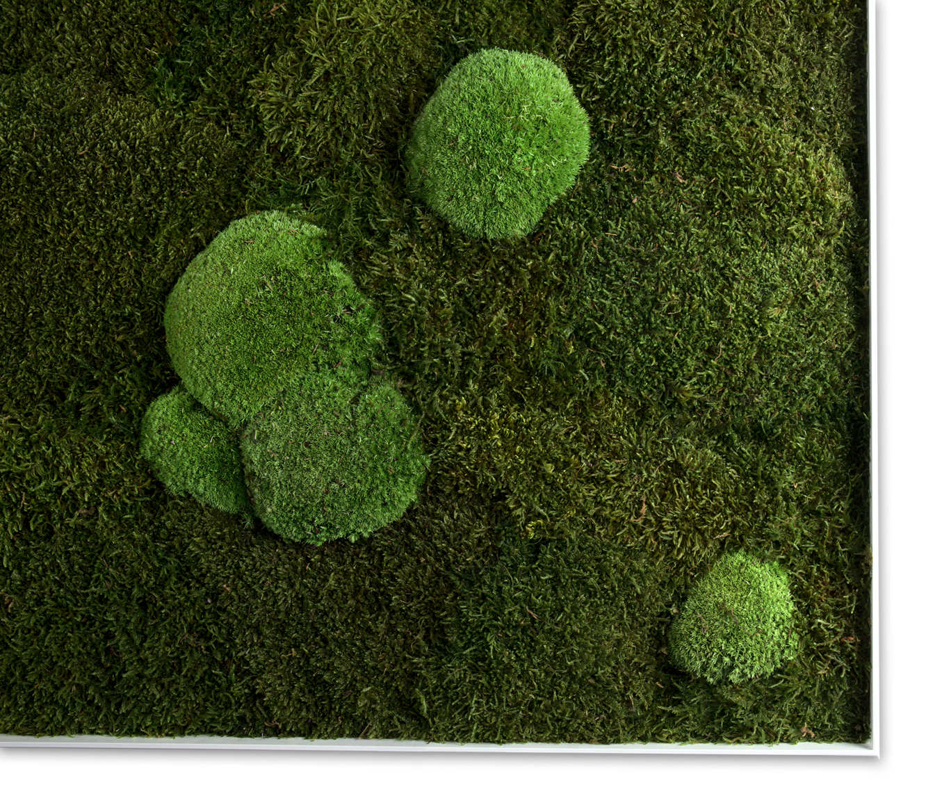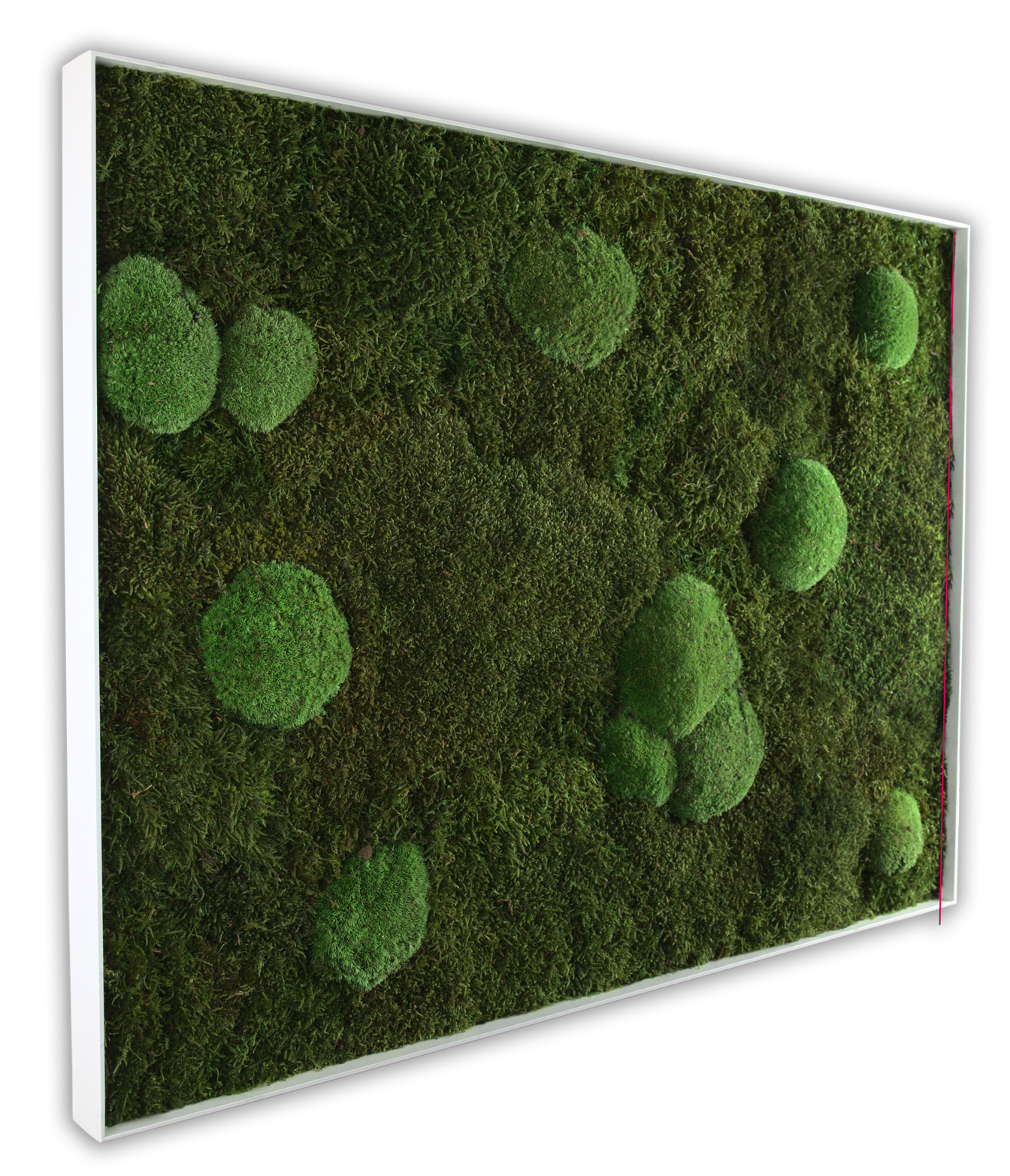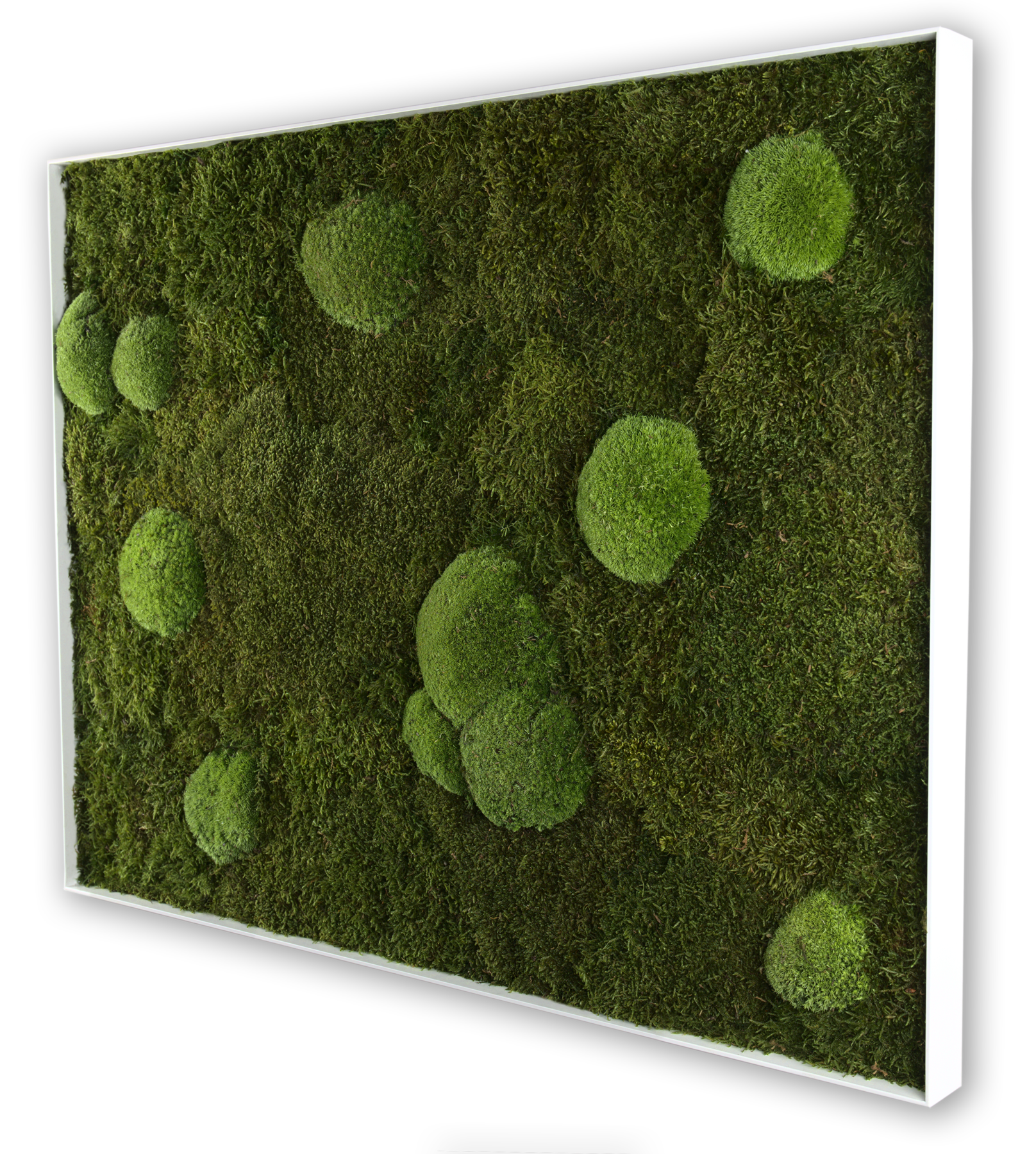 GreenHorizon: Flach- & Kugelmoos 60×80 mit Alurahmen weiß